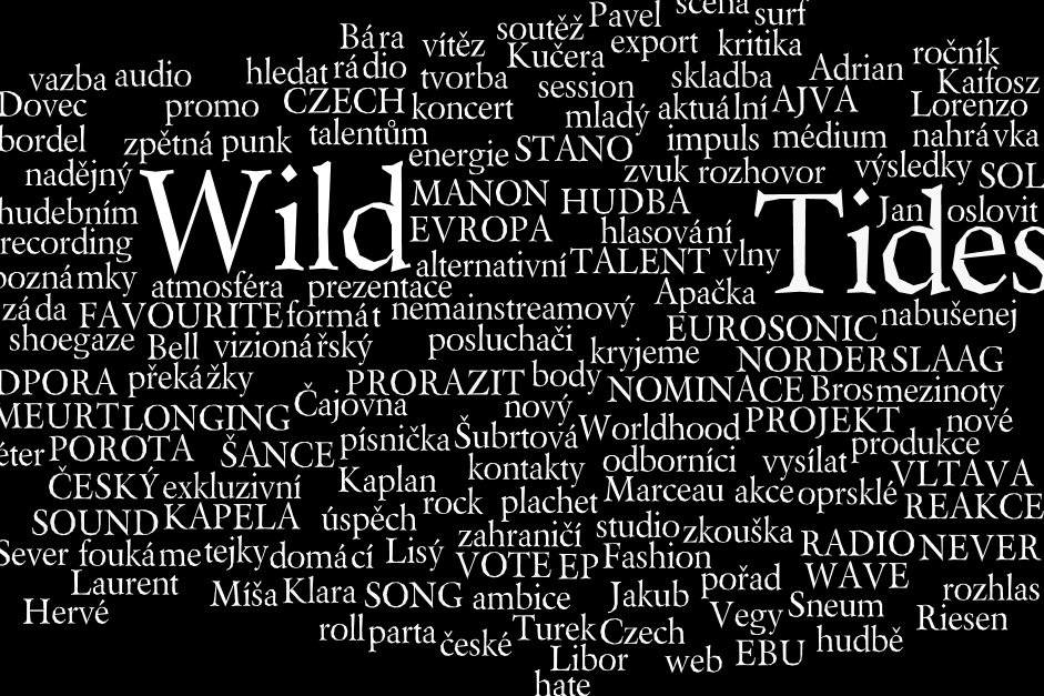 Adrian T. Bell. AJVA. akce. aktuální. alternativní. ambice. Apačka. atmosféra. audio. Bára Šubrtová. body. bordel zvuk. Kaplan Bros. Czech. Čajovna. ČESKÝ. domácí. EBU. energie. éter. EUROSONIC NORDERSLAAG. EVROPA. exkluzivní. export. formát. foukáme do plachet české hudbě. hate. Hervé Riesen. hlasování. hledat. HUDBA. impuls. Jakub Kaifosz. Jan Sneum. KAPELA. Klara. koncert. kontakty. kritika. kryjeme záda hudebním talentům. Wild Tides. Laurent Marceau. Libor Lisý. LONGING. Lorenzo. MANON MEURT. médium. mezinoty. Míša Dovec. mladý. nabušenej. nadějný. nahrávka. nemainstreamový. NEVER SOL. NOMINACE. nový. odborníci. oprsklé poznámky. oslovit. parta. Pavel Kučera. Pavel Turek. písnička. PODPORA. POROTA. pořad. posluchači. prezentace. produkce. PROJEKT. promo. PRORAZIT. překážky. rádio. REAKCE. recording session. rock´n´roll. ročník. rozhlas. rozhovor. scénař. nové EP Sever Fashion. shoegaze. skladba. SOUND. soutěž. STANO. studio. surf punk. ŠANCE. TALENT. tejky. tvorba. úspěch. Vegy. vítěz. vizionářský. vlny. VLTAVA. VOTE FOR YOUR FAVOURITE CZECH SONG. vysílat. výsledky. RADIO WAVE. web. Wild Tides. Worldhood. zahraničí. zkouška. zpětná vazba.