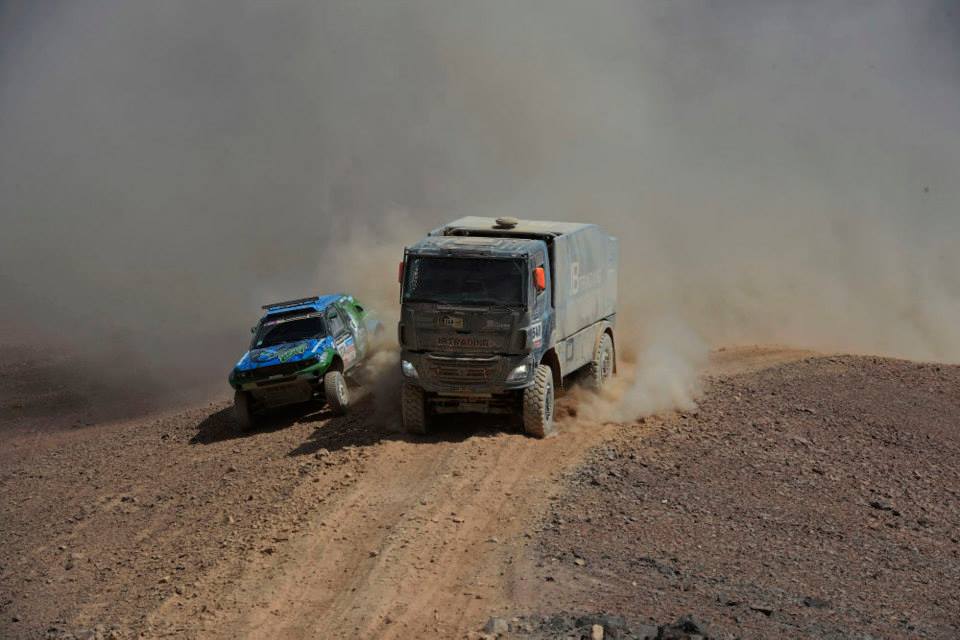 Stupeň zlomu přišel i mezi kamióny. Své čtvrté vítězství v roce 2014 si připsal Andrey Karginov z Kamazu. Za ním do cíle dorazil jeho týmový kolega Eduard Nikolaev, 14 minut a 18 vteřin. Ale co je nejdůležitější, třetí byl Gerard De Rooy – o 15 minut a 51 vteřin, což je dostačující ztráta k tomu, aby ho Karginov sesadil z pozice lídra závodu. A tak se také stalo! Je mezi nimi téměř osmiminutový rozdíl.