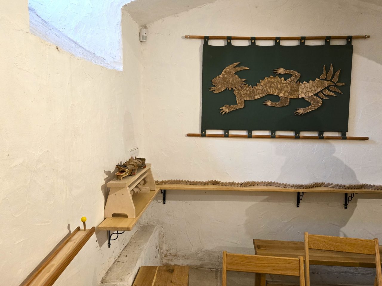 Ale draka není třeba se bát. V trutnovské Galerii Draka už mají strachy dávno vyřešené hravým způsobem. Galerie je prodchnutá vůní lipového dřeva z vyprávěcího kolotoče s loutkami. Ten je možné roztočit kličkou, rozhýbat tak na něm umístěné hračky a poslouchat, co se děje v „dračí“ alchymii.