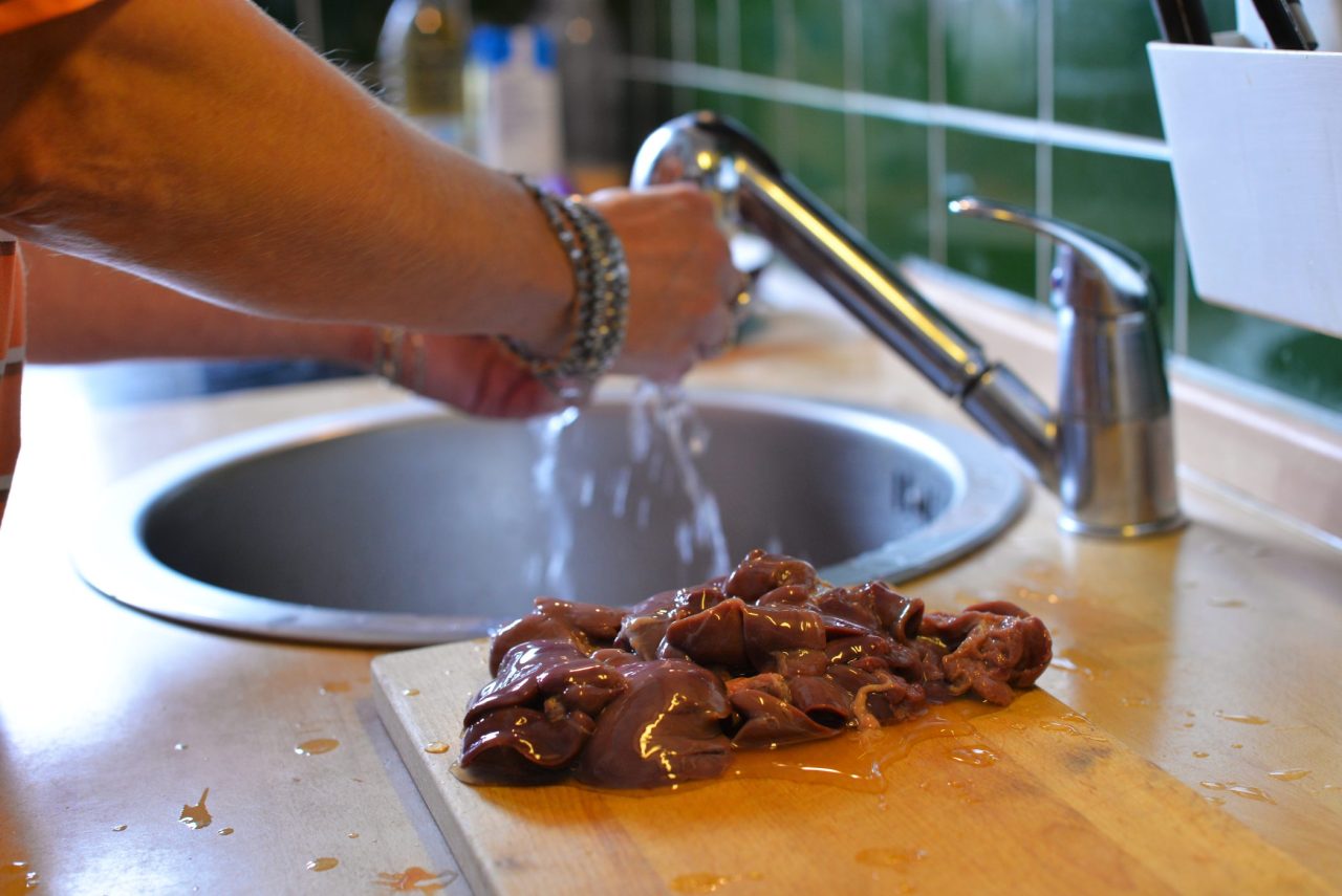 Nejdříve si omyjeme, odblaníme a nakrájíme na nudličky kuřecí játra. Přimícháme je ke krupici s mlékem a nakonec přidáme jedno rozšlehané vejce. Máme tak připravenou směs na nádivku. Nesolíme. Každý si osolí až hotovou placku podle chuti.