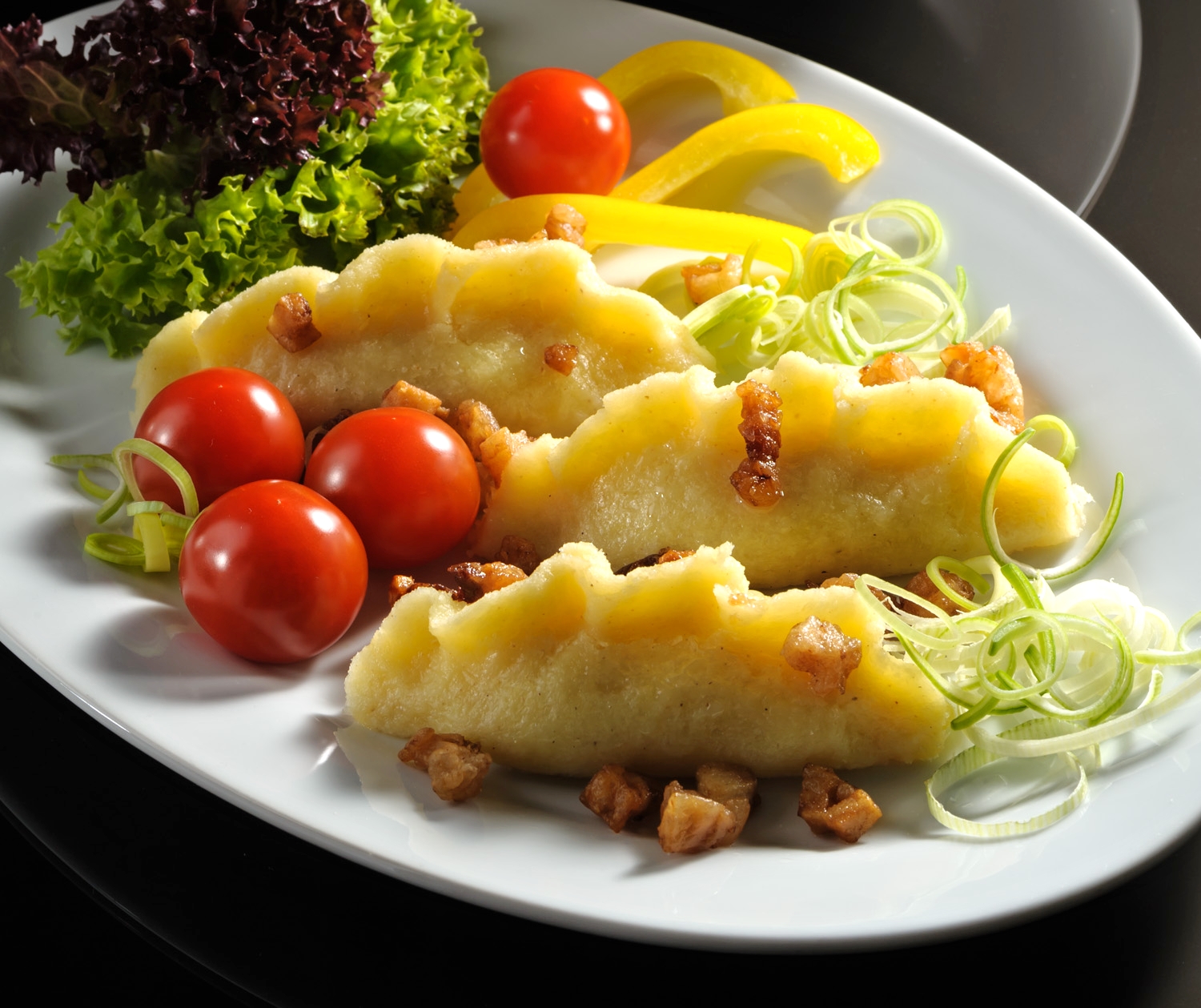 Hotové hřebínky vyjmeme a před podáváním polijeme rozpálenými škvarky. Lehké a chutné hlavní jídlo. Vhodnou přílohou je čerstvá nebo nakládaná zelenina.