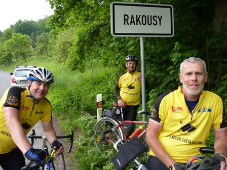 Ráno byla příjemnou změnou cyklostezka, která vede podél silnice z Kolína na sever a určitě zlepšila cestování. První zastávkou byla vesnice Česná Hora, nevelká osada západně od Dymokur. To jsme ještě pořád jeli úrodnou nížinou a cestovalo se docela rychle. Na oběd jsme se zastavili v Rožďalovicích, kde tři ze čtyř členů výpravy odvolili. Jirka Pilnaj se potom dočkal odměny za tento akt občanské zodpovědnosti: ihned po odchodu z volební místnosti zjistil, že má měkké zadní kolo. A tak od oběda si z verandy místního hostince odskakoval měnit plášť – a pro jistotu vyměnil přední i zadní.