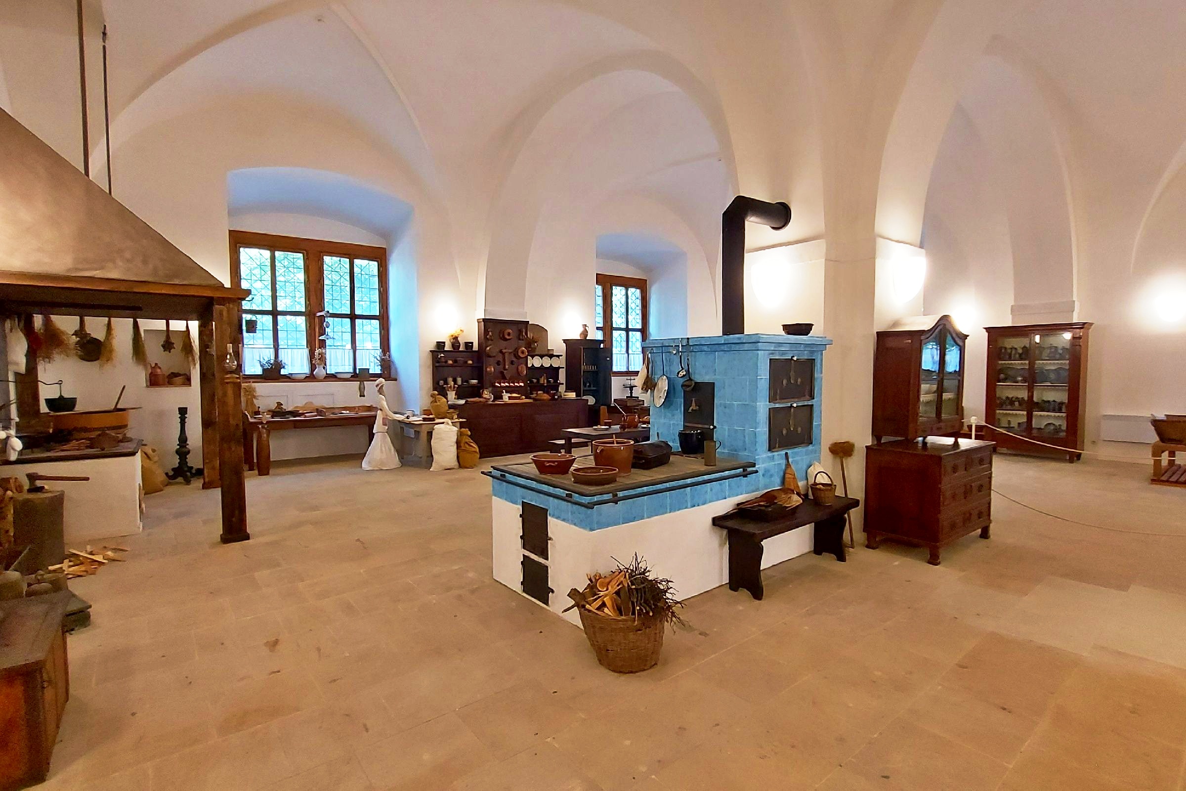 Část vybavení zámecké kuchyně je původní. Například rozměrné pískovcové nádrže na vodu, které byly dřevěným potrubím propojeny se zámeckým rybníčkem a pramenem vody. Původní je také skladová skříň, do které se mohly ukládat suroviny a také nádobí či nejrůznější pomůcky na vaření. Návštěvníky určitě zaujmou historické měděné formy na pečení či paštiky, které pocházejí z éry baroka. Některé z nich navíc dokládají, že i naši předkové měli smysl pro humor. Třeba ty ve tvaru pánského přirození.