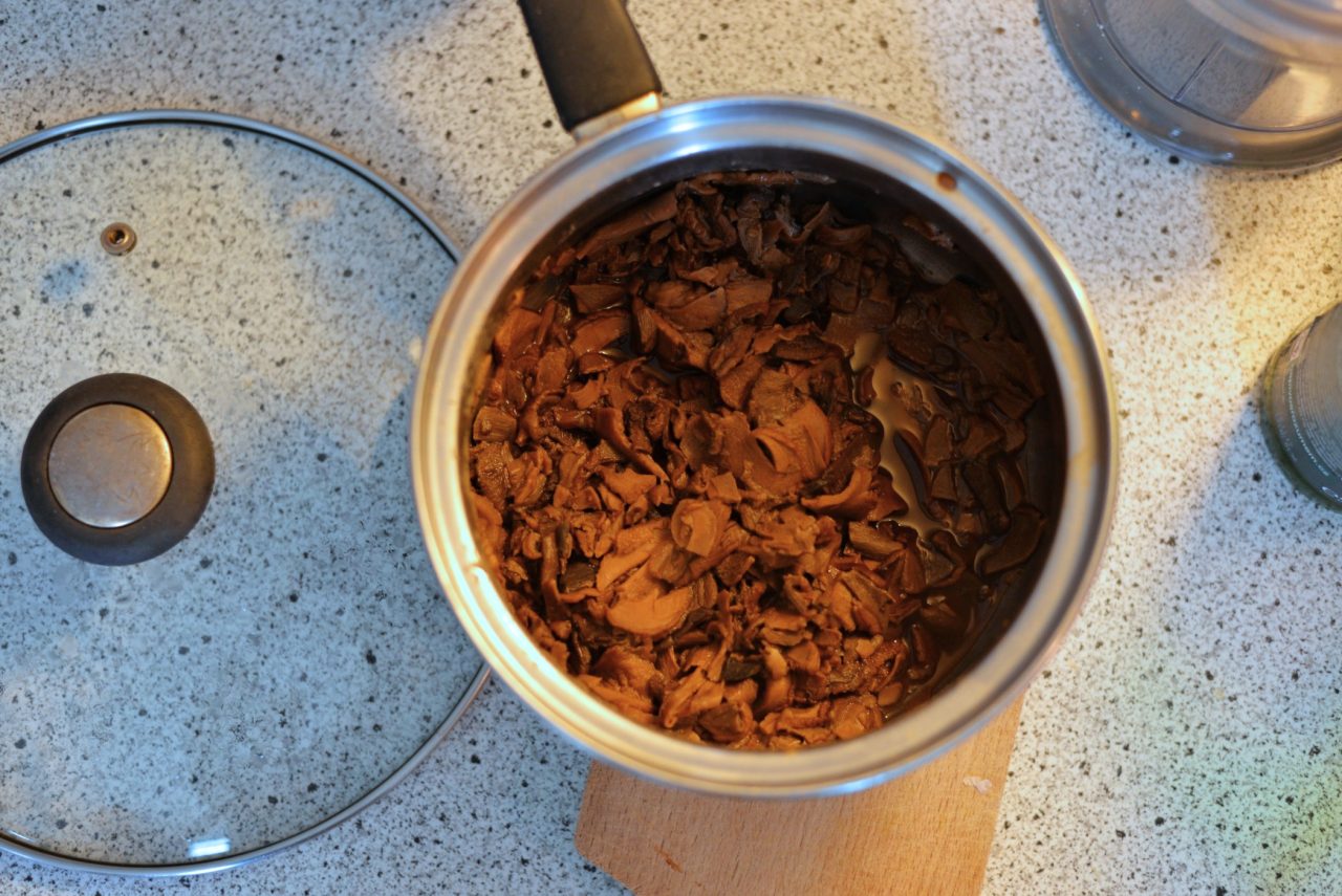 Ve třetí nádobě namočíme v osolené vodě sušené houby a povaříme.