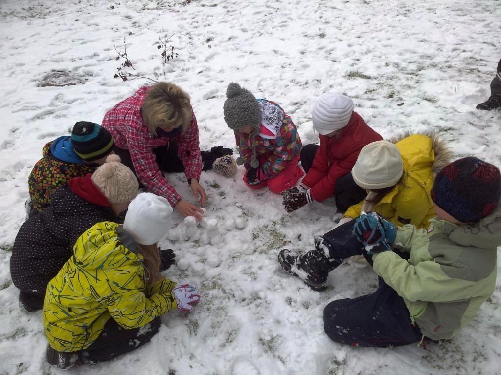 „Ne, protože sníh je přemrzlý a nedrží pohromadě. Nám to ale nevadí, budeme stavět armádu malých sněhuláků a pak se s tím budeme koulovat,“ říká paní učitelka Lenka Šidáková, která s dětmi ze třetí třídy základní školy ve Velkém Březně stavěla malé sněhuláčky.