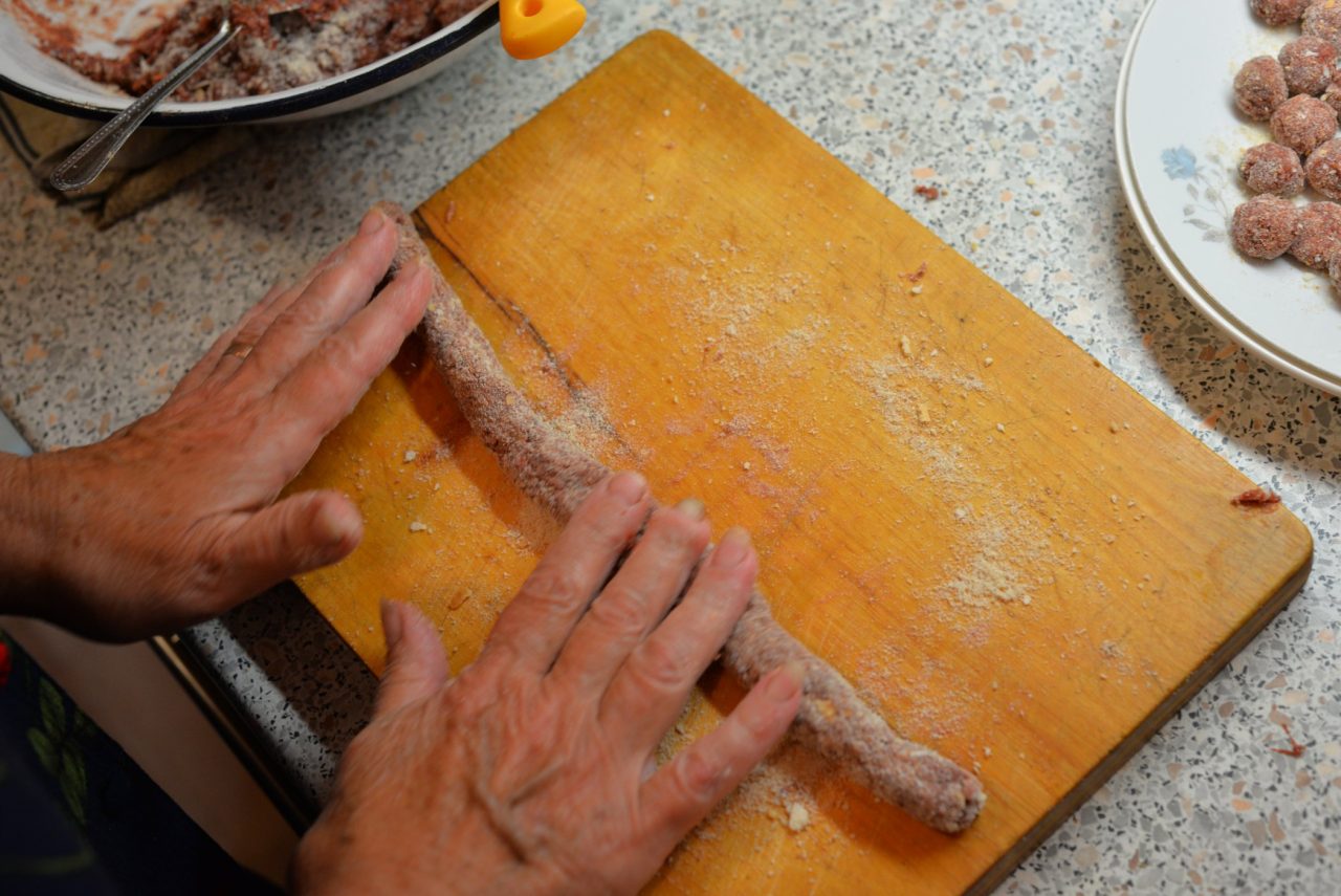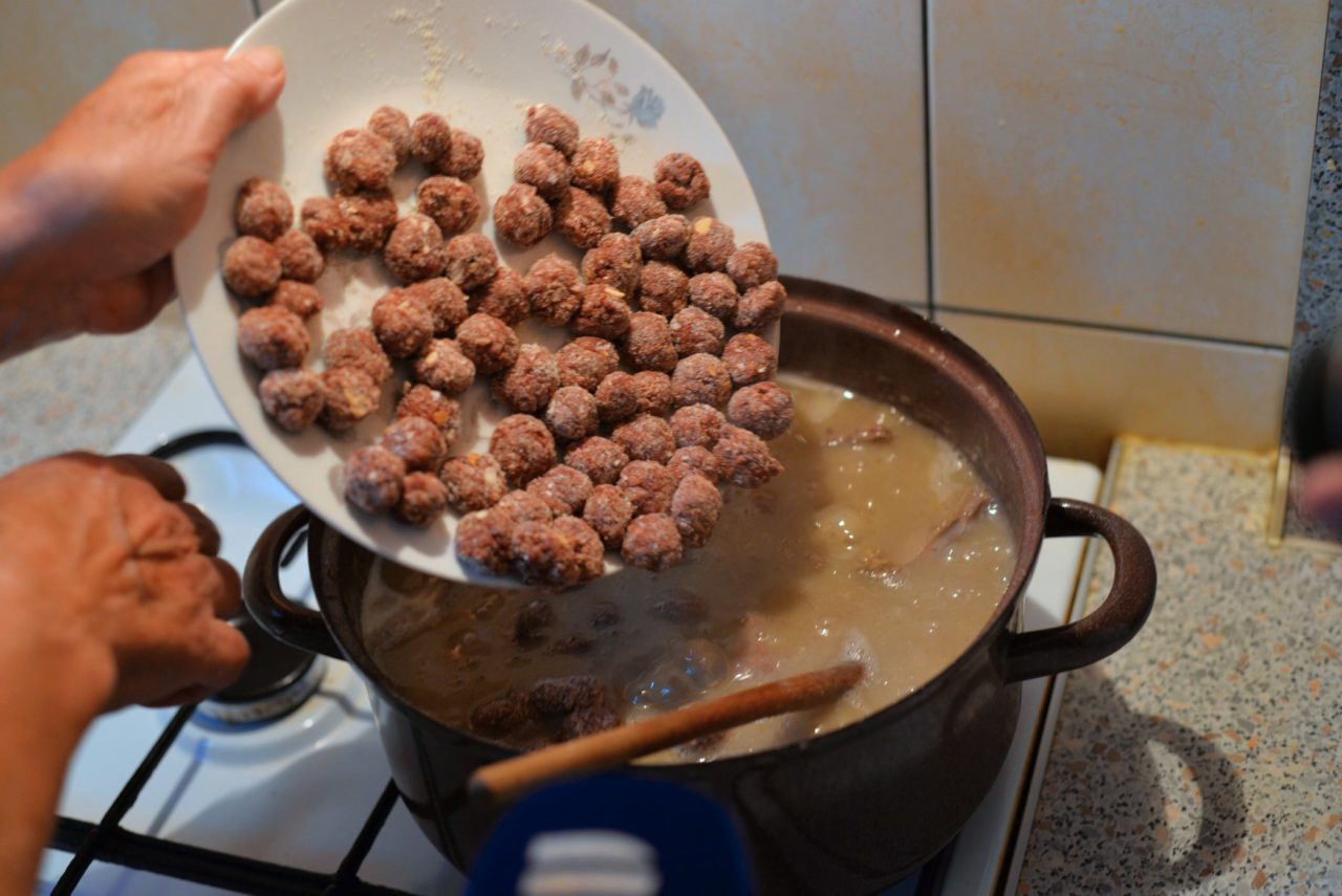 Vyválíme si váleček a krájíme malé kousky, ze kterých v dlani vyválíme kulaté knedlíčky. Ty poté vložíme do omáčky k téměř měkkému masu a chvilku povaříme.