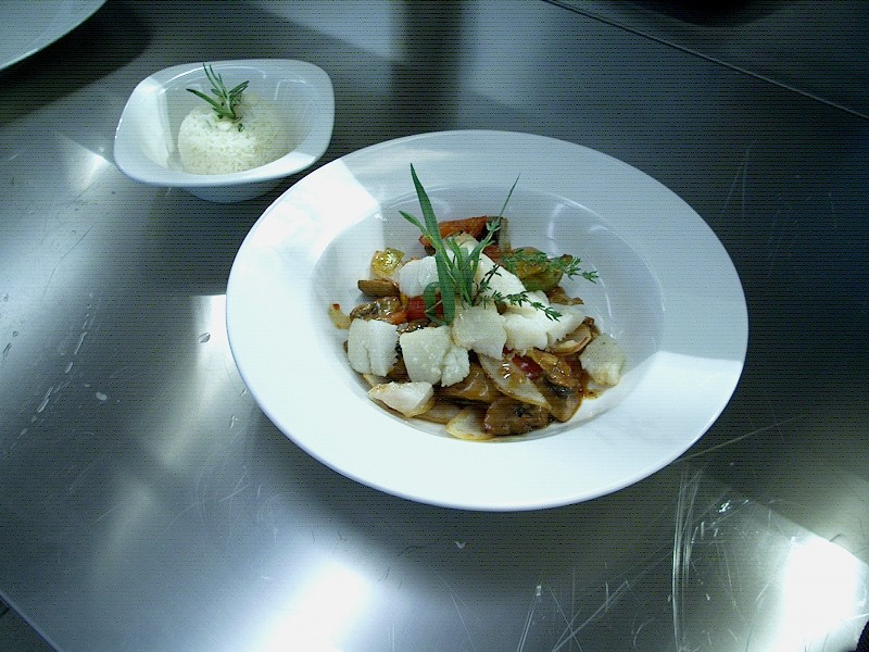 Suroviny: 4 filety halibuta bez kůže. Marináda: 6 stroužků česneku nahrubo nakrájeného, 1 lžíce nastrouhaného zázvoru, 1 lžička čerstvých lístků koriandru, 3 lžíce cukru, 3 lžíce sojové omáčky, 3 lžíce suchého cherry, 3 lžíce olivového oleje, 1 lžičku hrubé soli a 1 lžičku mletého černého pepře.