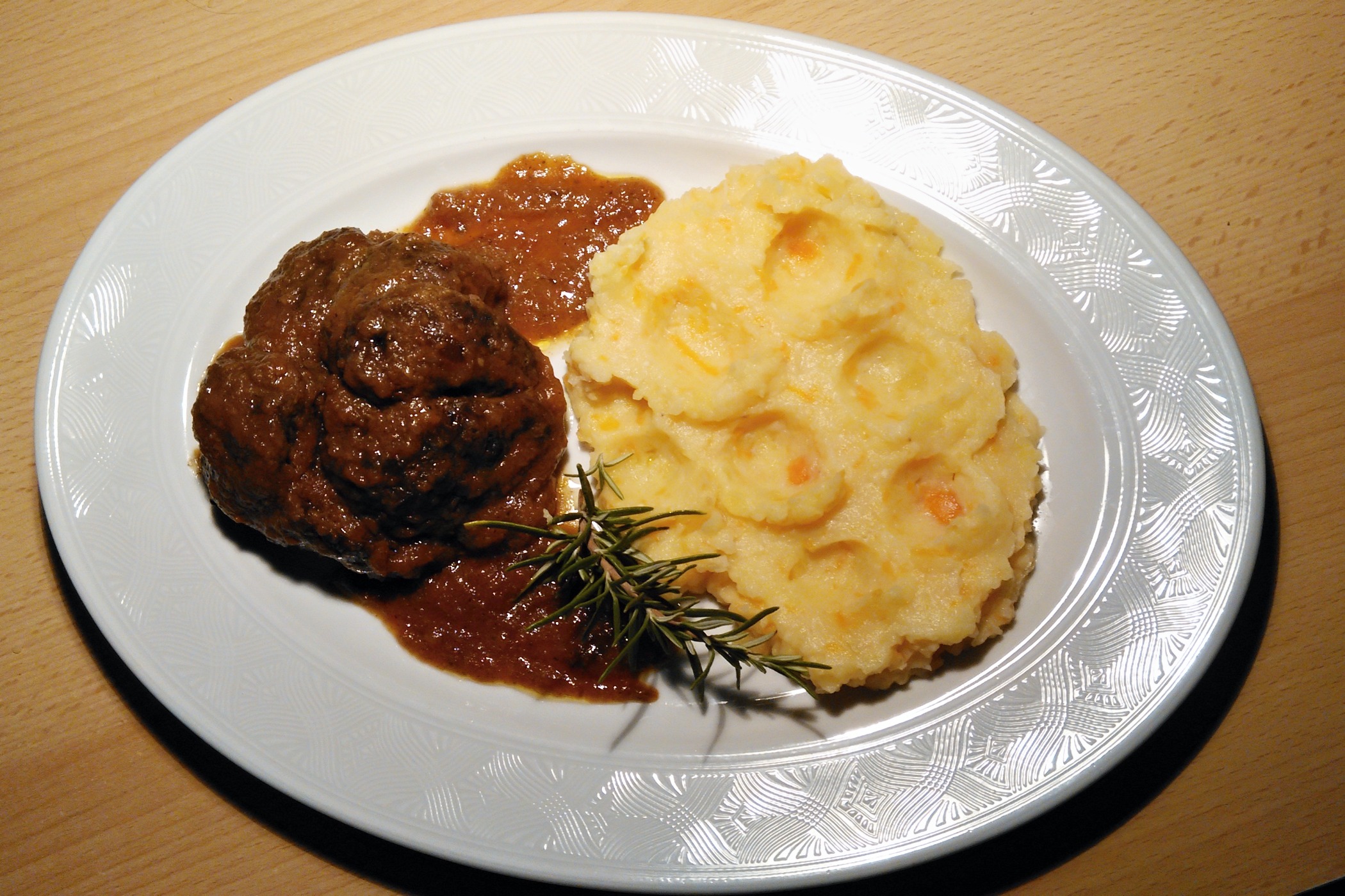 Podáváme s bramborovou kaší, do které jsme nastrouhali vařený celer a kedluben, event. i vařenou mrkev. Kaši ochutíme máslem. Takto upravená kaše je nejen velice chutná, ale lákavá i na pohled.