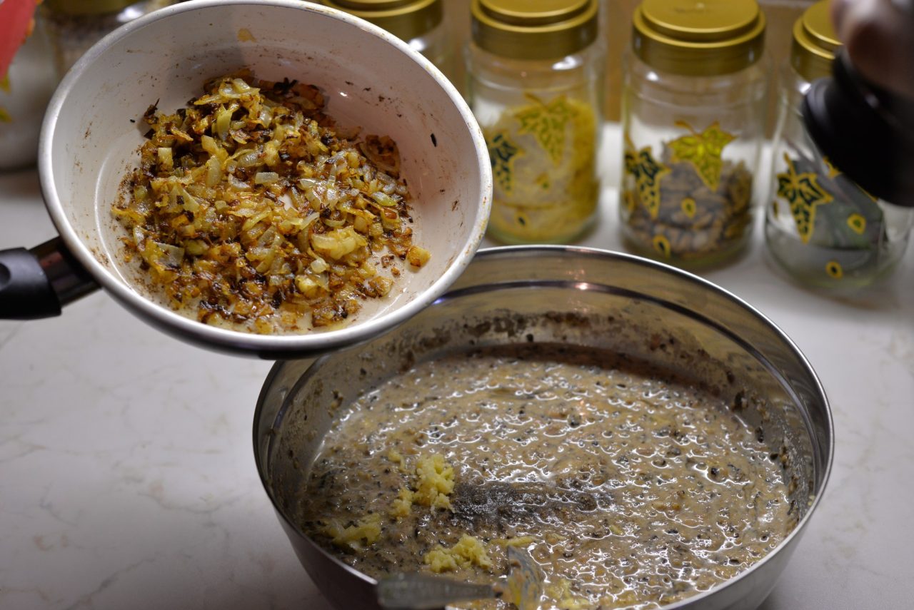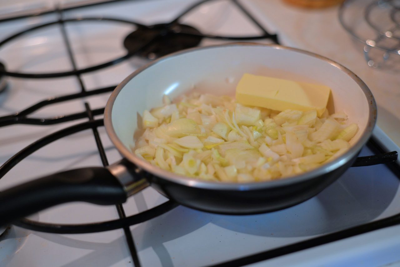 Na závěr přidáme zchladlou cibulku, kterou jsme si předtím usmažili do zlatova a promícháme.