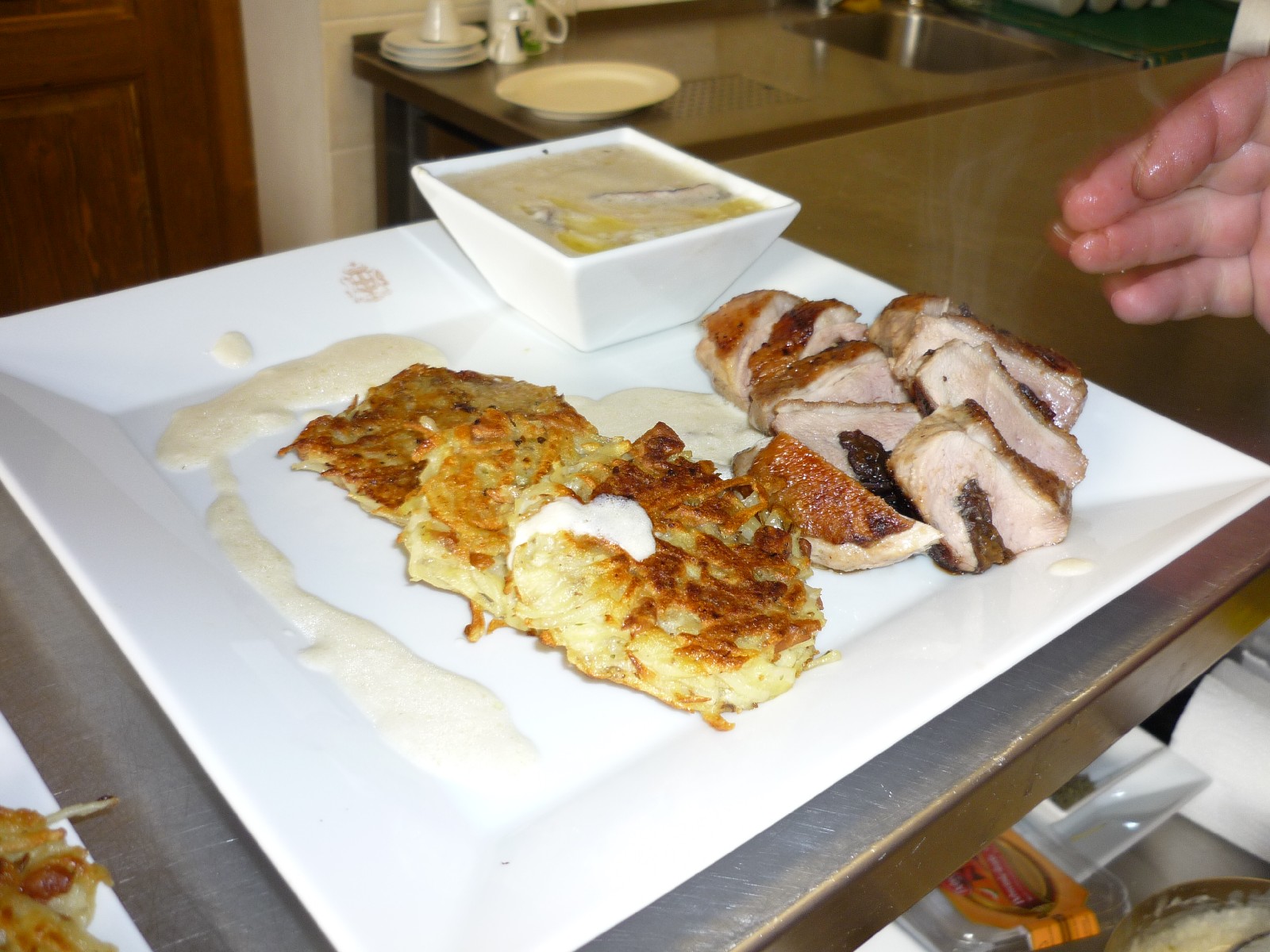 Suroviny: 250g brambor, mletá paprika, 200g hub (hřiby), 300g žampionů, kmín, 250ml polévkového vývaru, 0,5 – 1dc bílého vína, pažitka, 50g másla, 40g polohrubé mouky, koriandr, 1 velká cibule, 1 kyselá okurka, citrónová šťáva, sůl, zázvor (žlutý i bílý), bílý pepř, 1 lžíce kapary.