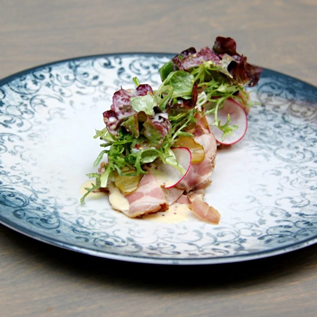 - Plátky masa naklepeme, osolíme, opepříme, nakrojíme okraje a z obou stran opečeme na sádle s osmahnutou cibulí.