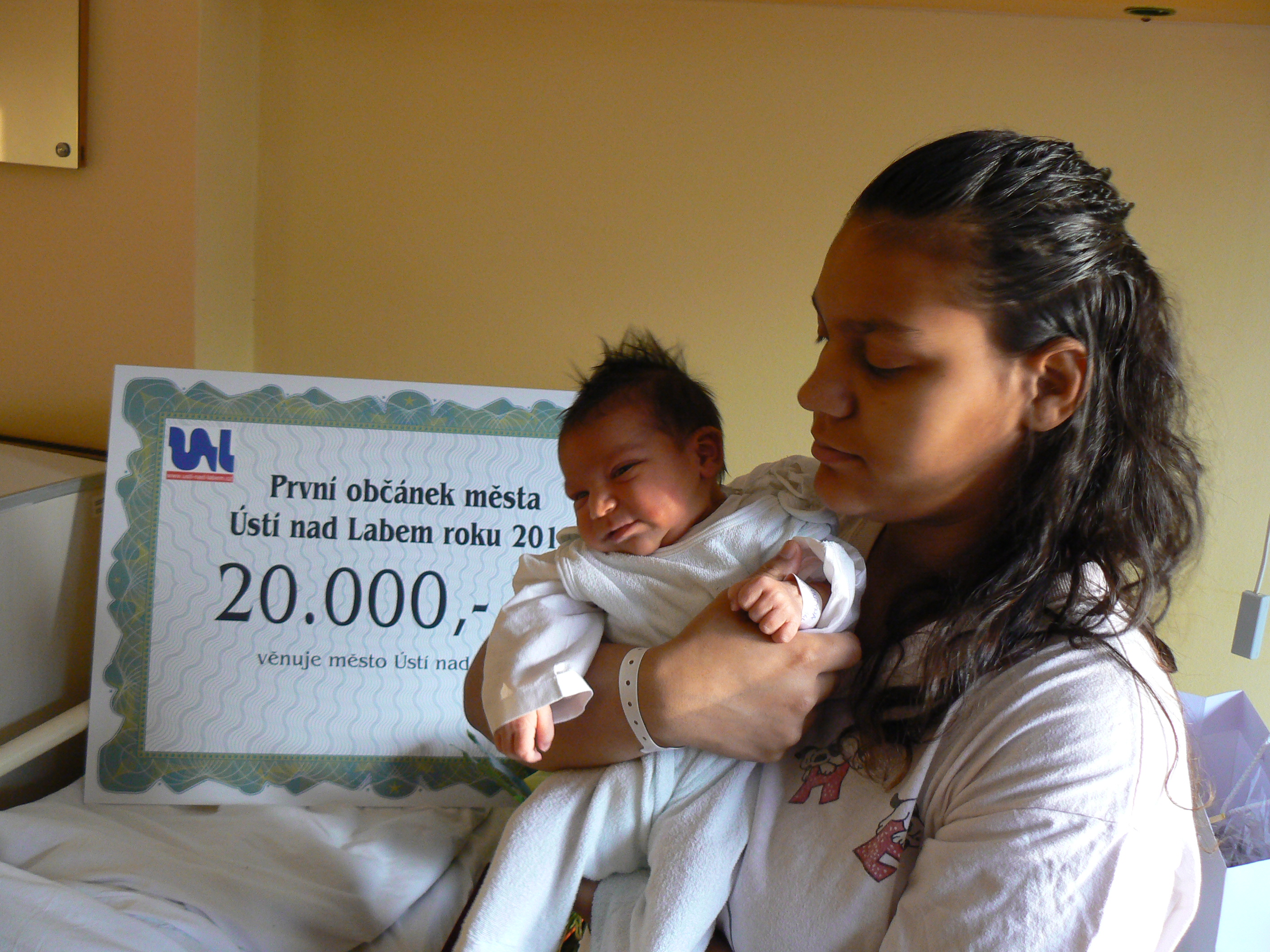Dárek dostala i Tereza Ikrová, maminka první letošní obyvatelky města Ústí nad Labem. „Jako každý rok, i letos dostala maminka prvního dítěte šek na dvacet tisíc korun,“ řekl primátor Vít Mandík.