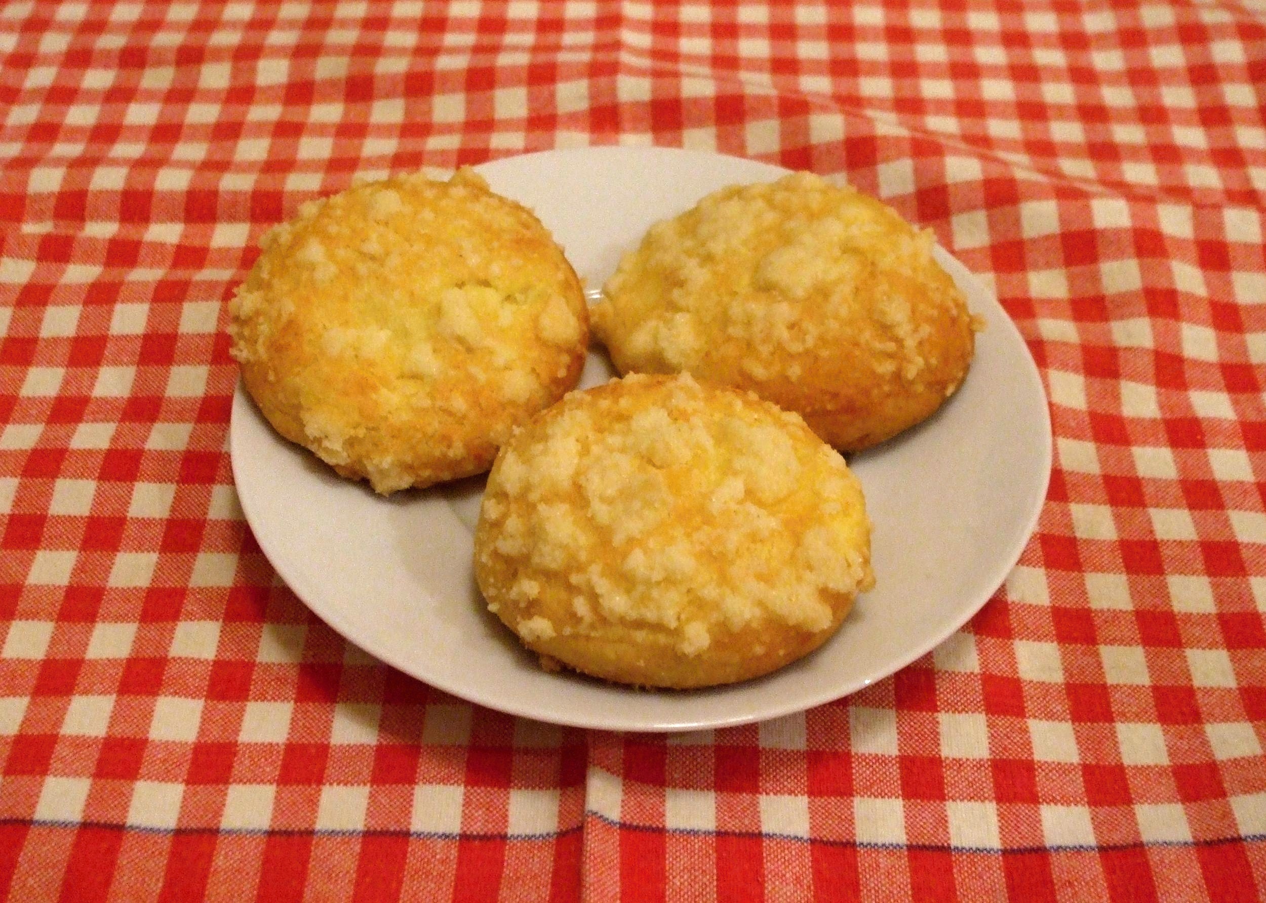 4. Vykynuté těsto vyválíme na půl cm, rozkrájíme na čtverečky, doprostřed dáme lžičku náplně a uzavřeme, vytvarujeme dokulata. Hladký povrch potřeme rozšlehaným vajíčkem a otiskneme do drobenky. Klademe na plech na pečicí papír spojem dolů a necháme ještě čtvrt hodiny kynout v teple. Pak upečeme ve středně předehřáté troubě.