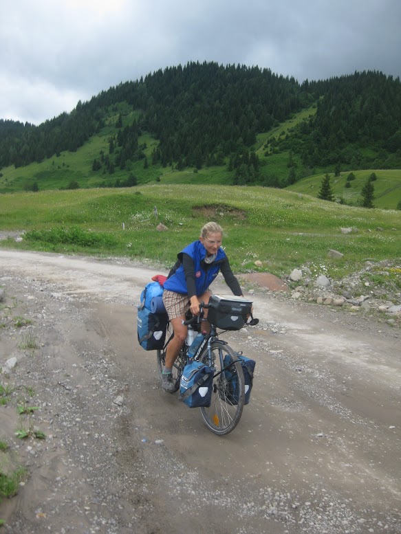 Když odbočíme z hlavní silnice, klesne doprava skoro na nulu. Následují nádherné pasáže po štěrkových, ale dobrých cestách. Z těchto cest značených jako silnice 2. třídy ovšem musíme záhy sjet na silnici „okresní“, o které nám jeden řidič řekl, že je to „očeň trudnaja gornaja daroga“. To nás samozřejmě nemůže rozházet, a tak po odbočení na tuto cestu nejprve brodíme řeku, abychom následně makali do sedla v zatím nejtěžším terénním výjezdu. To nás ale baví! A tak neztrácíme nadšení, ani když s velmi častými přestávkami zvládáme kola už jen tlačit. Odměníme se krásnou nocí v sedle.