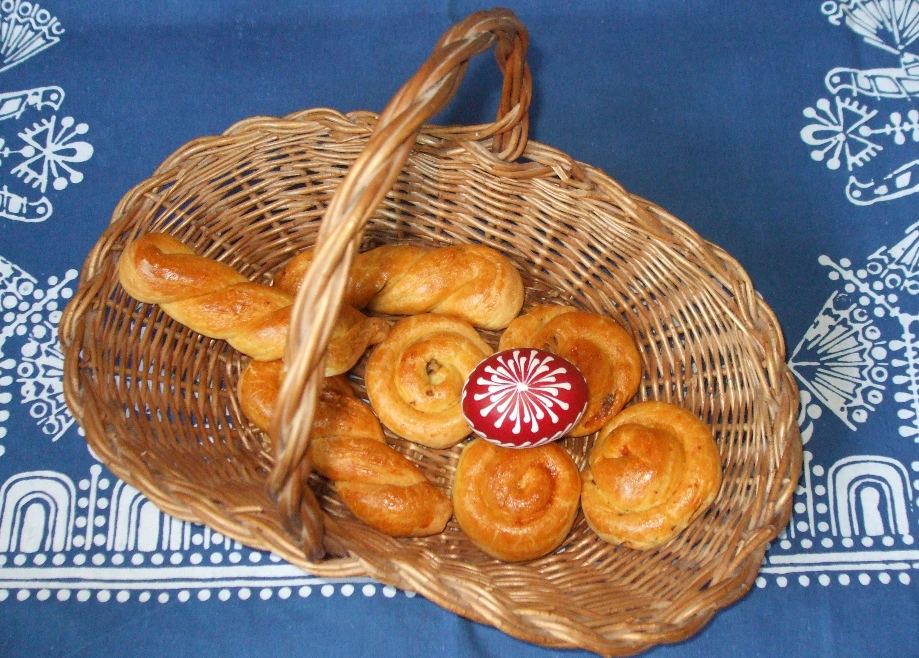 3. Na plechu s pečicím papírem je potřeme rozšlehaným vajíčkem, necháme ještě čtvrthodinky kynout a pak v středně vyhřáté troubě upečeme.