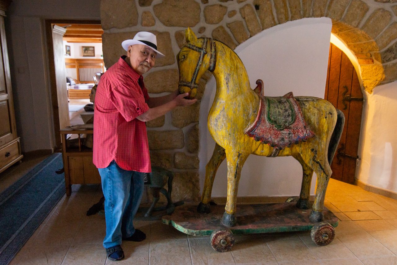 Ota Jirák už léta bydlí v bývalém formanském hostinci na cestě do Žitavy. Jedná se o patrovou roubenou chalupu s pavlačí. Hned v síni za dveřmi nás překvapila obří socha dřevěného koně, kterou dostal Ota k narozeninám. V prostoru bývalého hospodského sálu má dnes velký obývací pokoj a v místě, kde býval malý bar, má svou malou trucovnu. Té říká „absteig“. Do ní se vstupuje tajným vchodem přes šatní skříň. Ota tu i spí. Má zde cedulku s nápisem: „Tvůrčí lidé pracují nejvíce, když vypadají, že nic nedělají.“ To ho prý vystihuje. Už od dětství toužil po tajných vchodech, tak si ty sny plní na stará kolena. A manželka je ráda, že ji nebudí chrápáním, které přes šatstvo ve skříni není tolik slyšet.