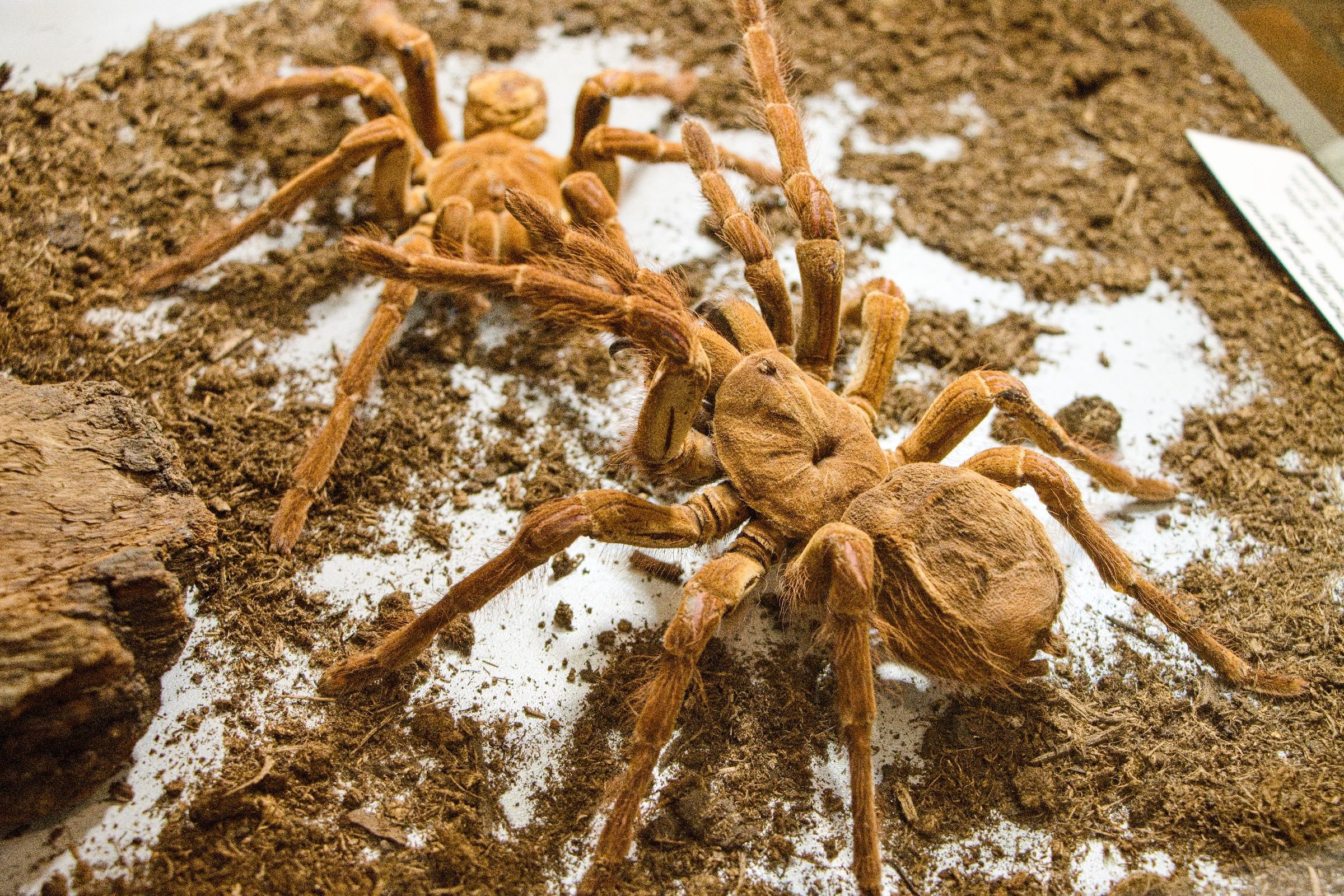 „Jedná se o exotické zástupce z řad sklípkanů, preparovaných z chovů soukromých chovatelů v takzvaně fyziologických podobách. Je to trochu složitější preparační metoda. Třeba samotné schnutí preparátů trvá i několik měsíců. Jsou křehké a zároveň některé druhy mají ochlupení těla, které způsobuje na kůži ekzémy a vyrážky. Člověk tak musí s tím preparátem pracovat relativně opatrně,“ vysvětluje autor Pavoukária, zoolog Lukáš Blažej.