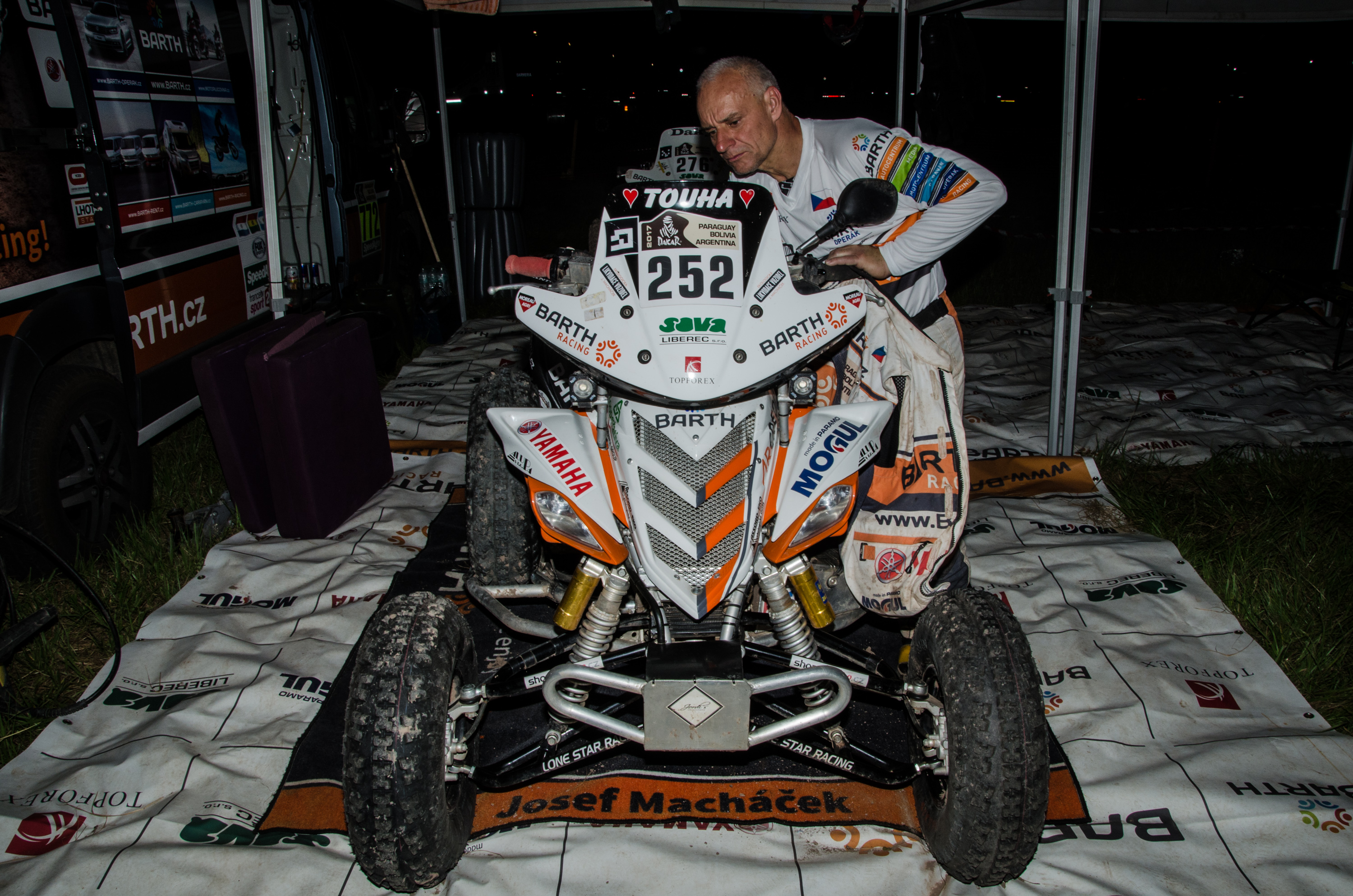 „Josef měl před koncem dnešní etapy vážnou nehodu. Nejvíc to naštěstí odnesla jen čtyřkolka. Pepa má vykloubené rameno a zraněnou nohu. Byl ale při vědomí, ihned si zavolal vrtulník a již se zotavuje v nemocnici,“ uvedl na svém webu tým Barth Racing. Před odjezdem do Jižní Ameriky devětapadesátiletý Macháček tvrdil, že Dakar jede naposledy.