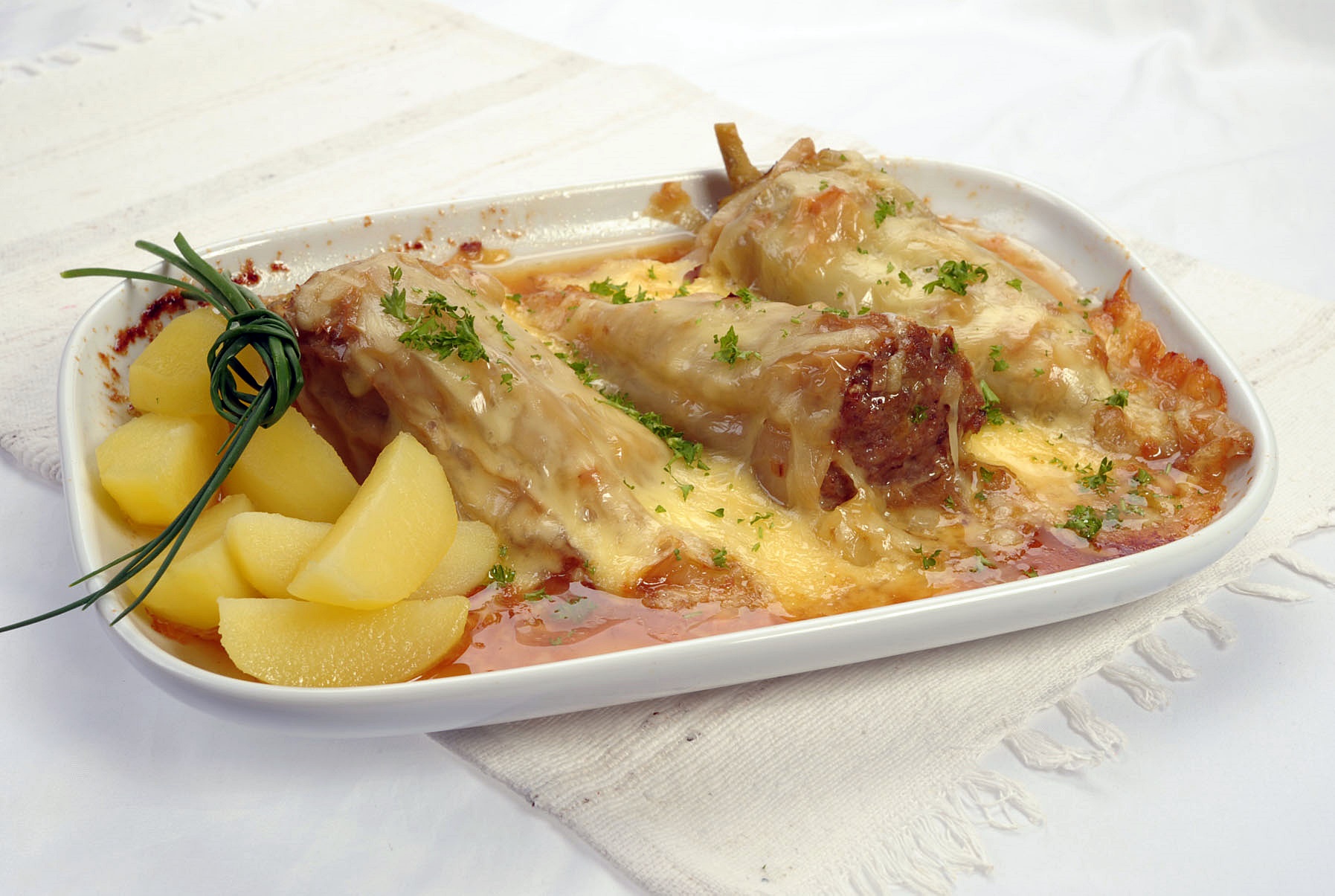 Vydlabané, omyté a osušené papriky naplníme masovou směsí, připravenou důkladným promícháním mletého masa, vařené rýže nebo pohanky, vejce, hořčice, pepře, cukru a soli. V kastrole rozpálíme tuk a zpěníme na něm na plátky nakrájenou cibuli. Do tohoto základu vložíme naplněné papriky, mírně podlijeme vodou a podusíme zhruba 20 minut. Potom nádobu s paprikami vložíme do středně vyhřáté trouby a bez pokličky zapékáme asi 20 minut. Před dokončením posypeme pokrm nastrouhaným sýrem a ještě chvíli zapečeme. Upečené papriky zdobíme petrželkou. Příloha: vařené nebo pečené brambory, chléb, saláty z čerstvé zeleniny.