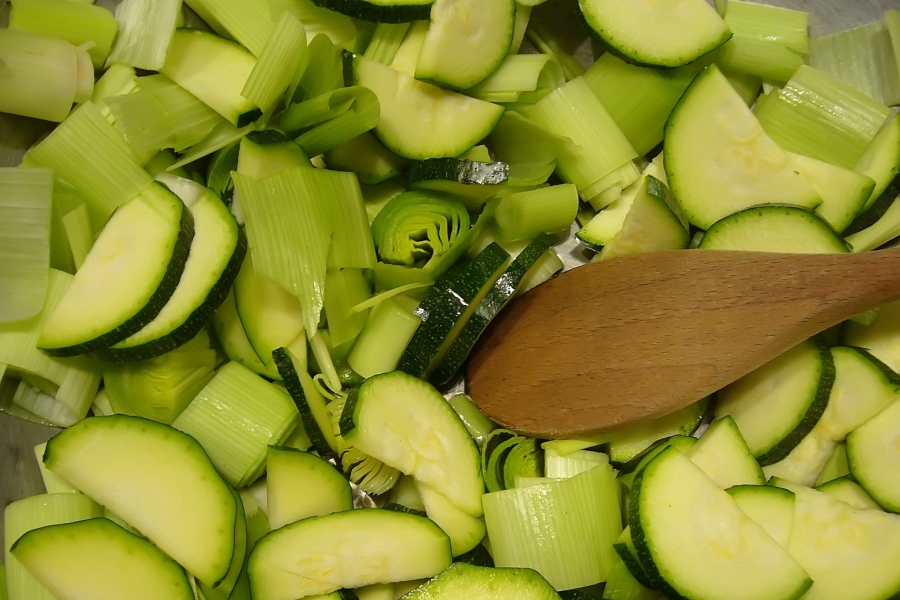 Očištěný pórek nakrájíme na tenká kolečka, oloupaná jablka na nudličky. Majonézu ochutíme citrónovou šťávou, cukrem, osolíme, promícháme a smícháme s pórkem a jablky. Podáváme vychlazené na listech hlávkového salátu.