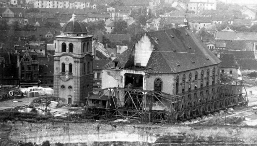 Záchranu kostela budoucí generace jistě ocení, likvidaci historického královského města už pravděpodobně méně. Někteří pamětníci možná doma najdou i minci, kterou si před 50 lety nechali přejet kostelem. Jedná se o nejtěžší předmět, co kdy lidé převezli po kolejích. Protože dráha, po které kostel ujel těch 840 metrů, byla oblouková, změnila se orientace chrámu. Už není ze západu na východ, ale ze severu na jih.