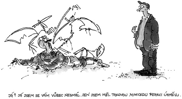 Jediné, co pan šéf opravdu neměl, byl smysl pro humor. Když jednou za čas přinesl do redakce své nové vtipy gigant kresleného humoru Vladimír Jiránek, zavíral se pan šéfredaktor do své kanceláře, kde ty obrázky pečlivě studoval a rozhodoval, zda stojí za uveřejnění. Když vyšel ven, ptal se nás, kteří jsme nad Jiránkovými kresbami řvali smíchy: Pánové, můžete mi vysvětlit, co je na tom směšného?