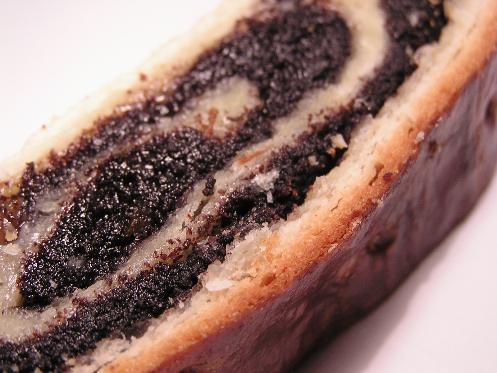 Suroviny: 500 g hladké mouky s půlkou prášku do pečiva, 120 g cukru, 1 hera, 2 vejce, 1 vanilkový cukr, špetka soli, na náplň: 250 g mletého máku, 1 l mléka, 2 pudinky, 2 lžíce krystalového cukru, 2 vejce, 150 g cukru moučky, 100 g rozinek namočených v rumu, mleté piškoty.