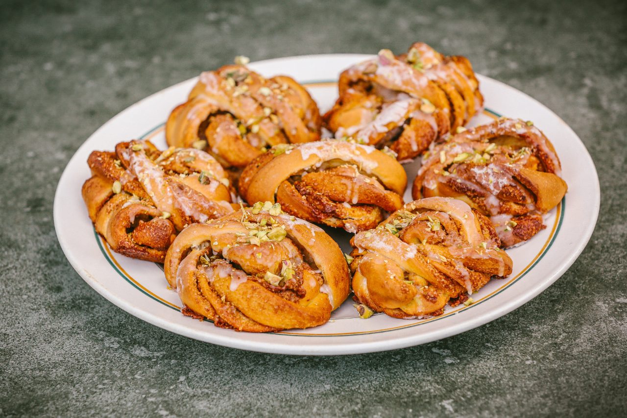 Kynuté pletence vycházejí z klasických švédských skořicových šneků. Pistácie krásně chrupnou, glazura dodá svěží nádech, máslo vláčnost. Ideální podzimní dezert.