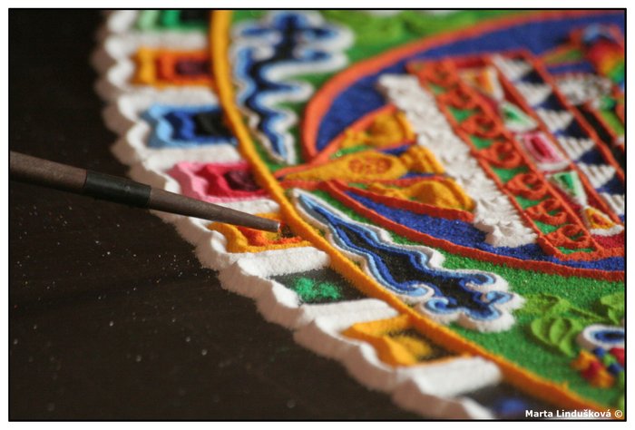 Vytvoření mandaly trvá několik dní a je velmi pracné, přesto jí mniši nakonec zničí – jedná se totiž o oběť.