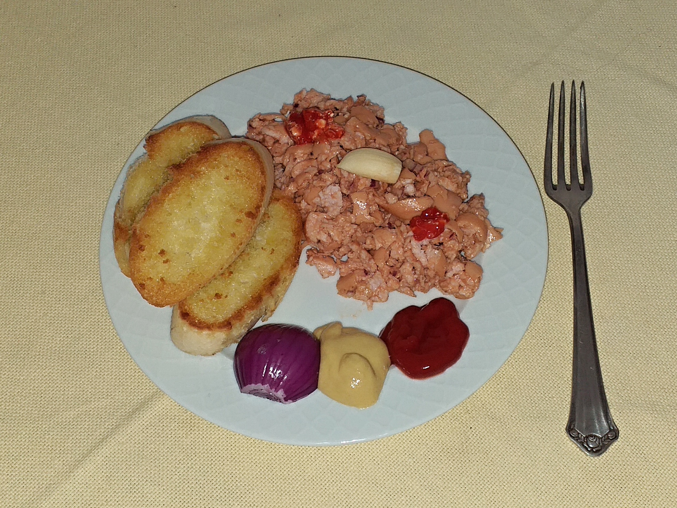 - Ochutíme přísadami podle vlastní chuti a podáváme s topinkami nebo s opečenými plátky bagety. Česnek použijeme jen na topinky nebo bagetu.