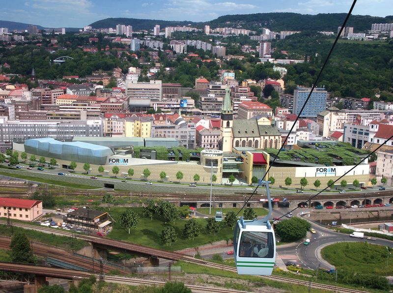 Ve čtvrtek 12. listopadu se otevře v centru města Ústí nad Labem nový obchodní komplex Forum. Jediné, co v něm zůstane nedokončeno, je kabina pro lanovku na jeho střeše. Chybí samotné zařízení lanovky, která povede na výletní hrádeček Větruše. Kdy se lanovkou svezou první cestující?