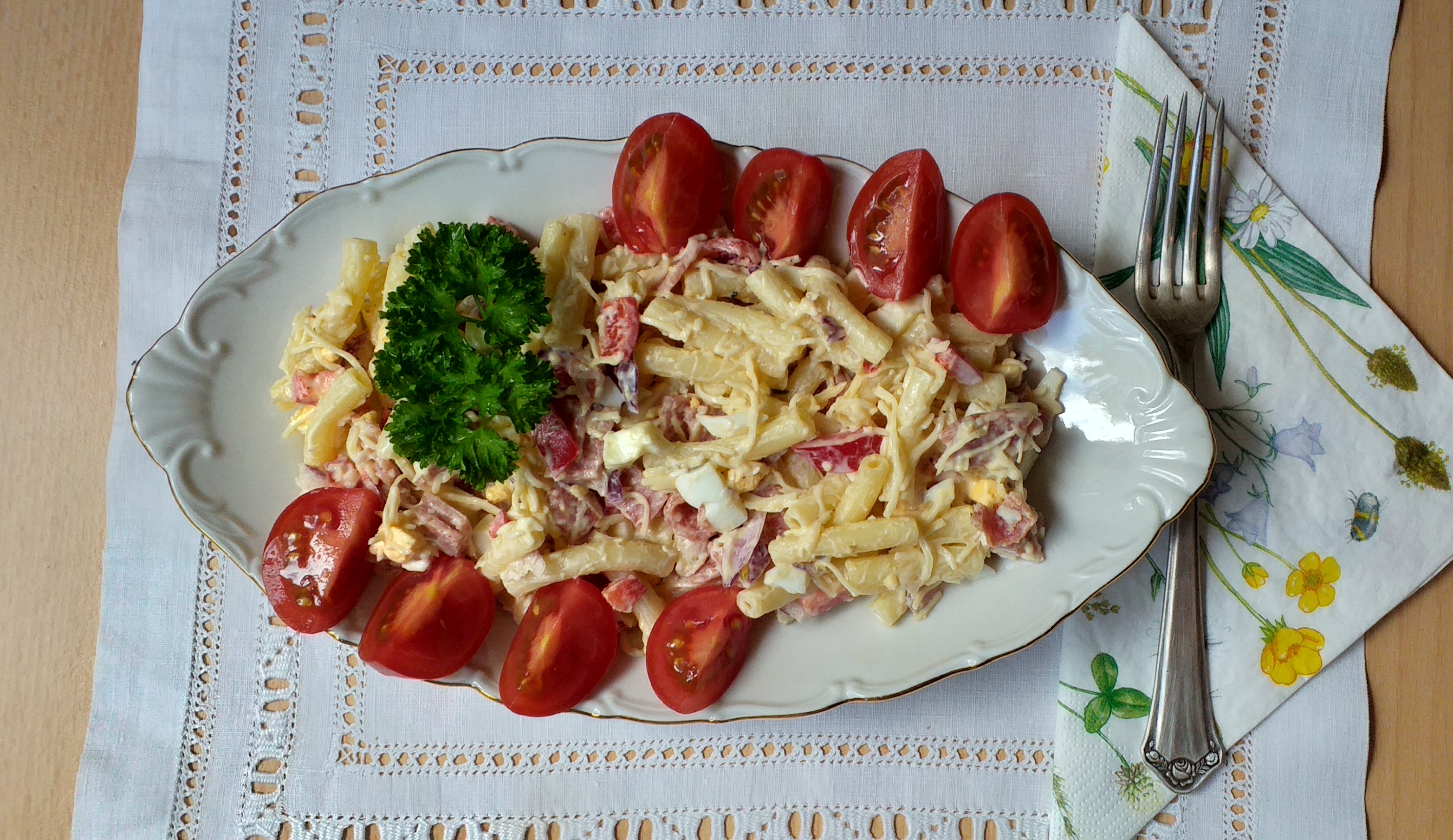 - Těstoviny uvaříme ve slané vodě – volíme drobné tvary. Po uvaření scedíme a necháme vychladnout.