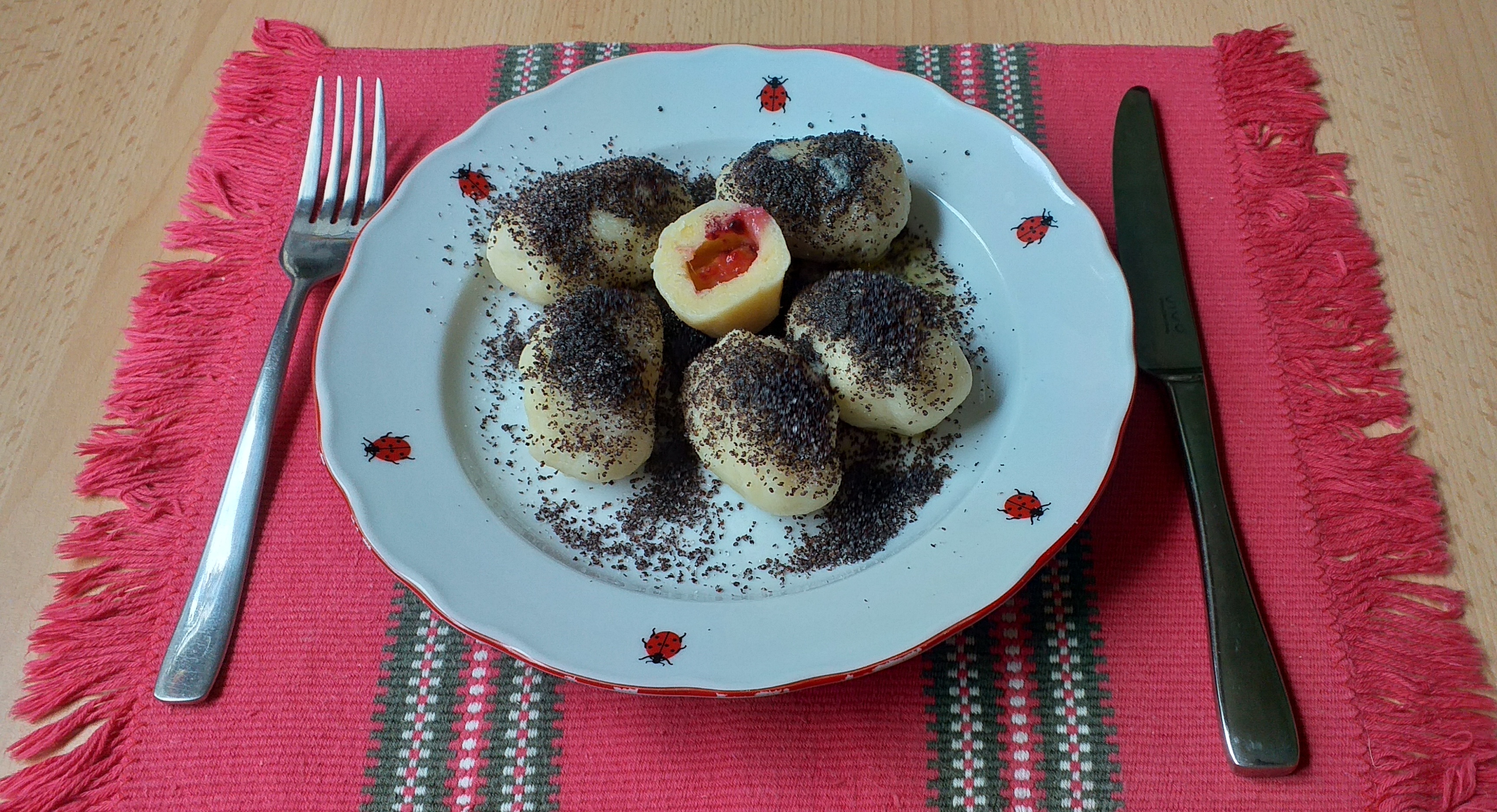 - Uvařené knedlíky na talíři posypeme mletým mákem smíchaným s cukrem moučkou a přelijeme rozpuštěným máslem.