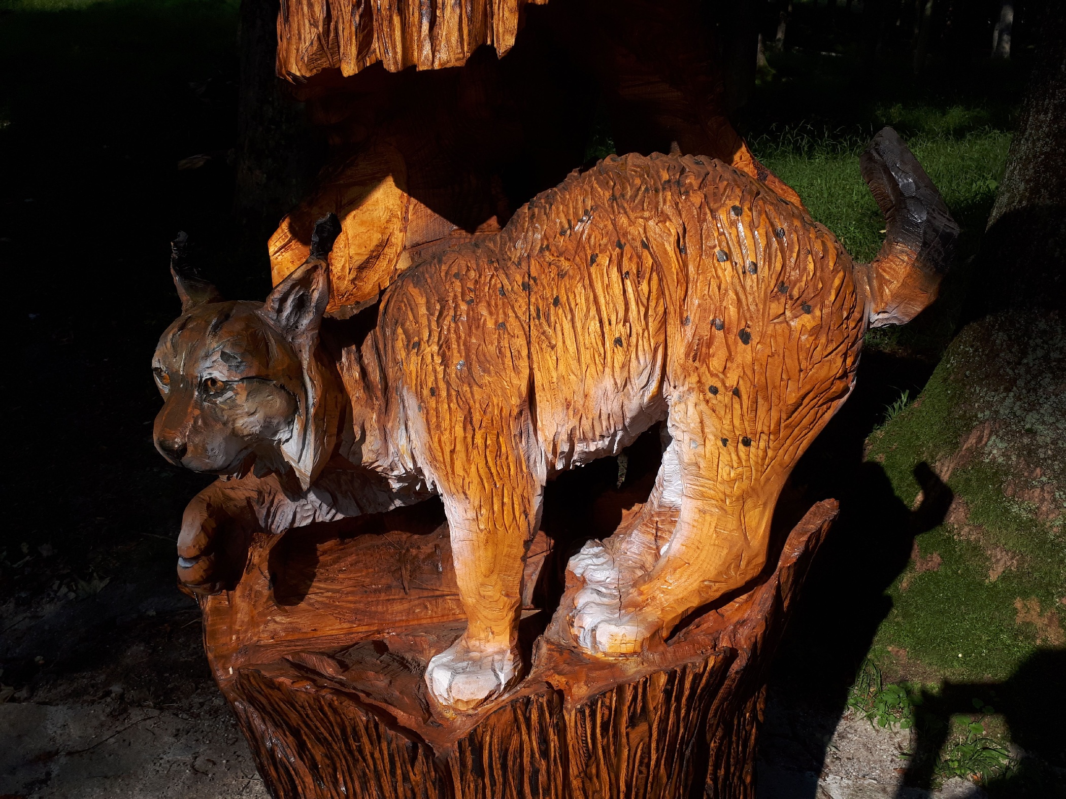 K typickým obyvatelům tohoto místa sice patří daňci a mufloni. Od letošního léta má ale Obora Hukvaldy na severní Moravě nového patrona. Nepočítáme-li lišku Bystroušku, u jejíž sochy se zastaví každý návštěvník po cestě k hradu. Ty, kteří si dají tu námahu a místo obvyklé cesty do kopce se vydají podél amfiteátru dále, přivítá obezřetný rys. Ještě voní čerstvým dřevem a jeho pestrý nátěr svítí do daleka. Stráží místo odpočinku a občerstvení. Studánku určenou všem příchozím