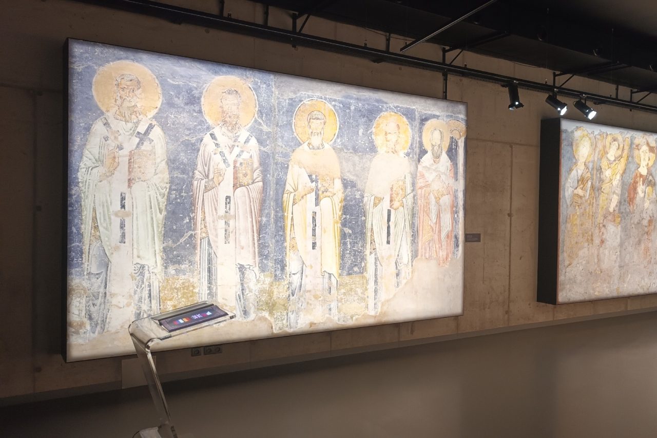 „Interaktivní formou se snažíme odvyprávět životní osudy těchto dvou osobností,“ říká archeolog. Zajímavostí jsou čtyři fresky, které jsou umístěné na stěnách sálu. „Originály dvou z nich se dnes nacházejí v Římě, druhé dvě pocházejí z Makedonie. Všechny odkazují na cyrilometodějskou tradici,“ doplňuje Tomáš Chrástek.