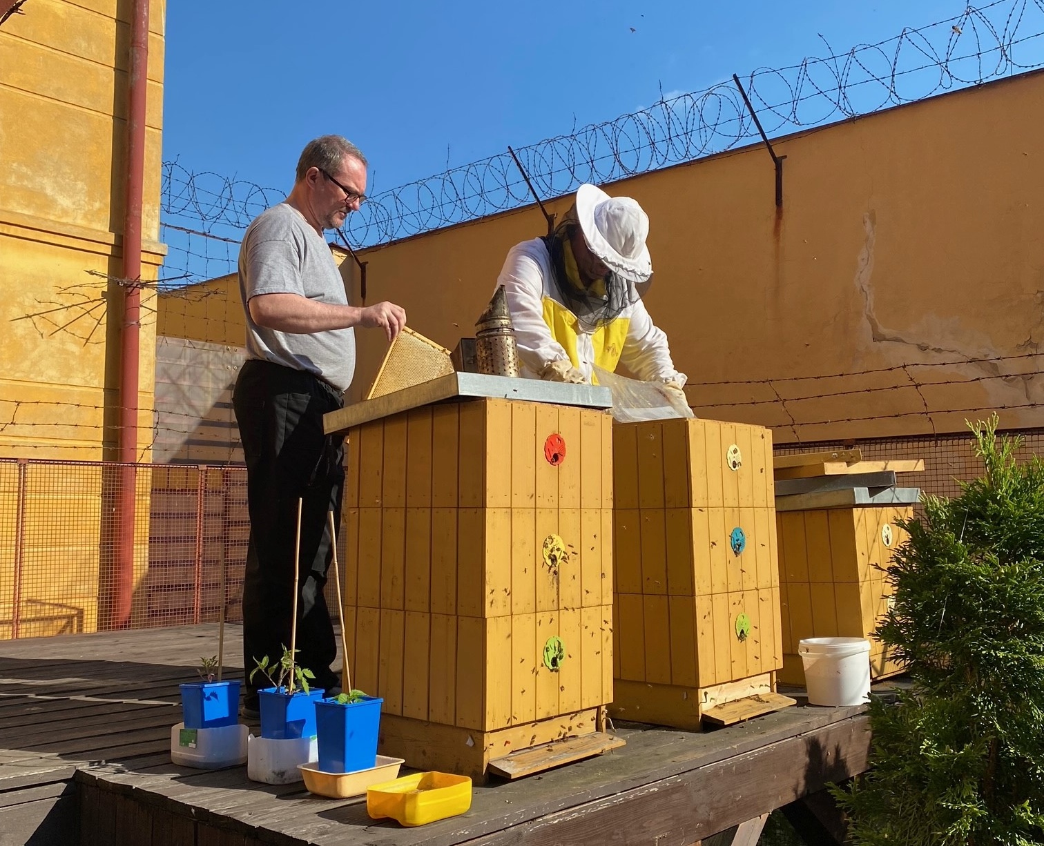 Odsouzení v litoměřické věznici mají netradičního koníčka. Ve svém volném čase se pod vedením vychovatele starají o tři včelstva. A mezi vězni je o včelaření velký zájem. Letos odsouzení na vycházkovém dvoře stáčeli první med. Vyzkoušeli si už odebírání tzv. rámečků včelám, odvíčkování speciální vidličkou, vytáčení v medometu a nakonec plnění medu do sklenic.