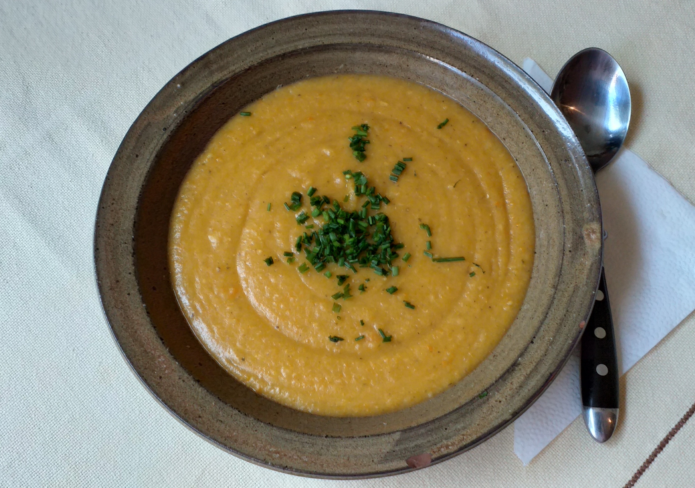 - Pak polévku rozmixujeme a ozdobíme pažitkou nebo petrželkou.